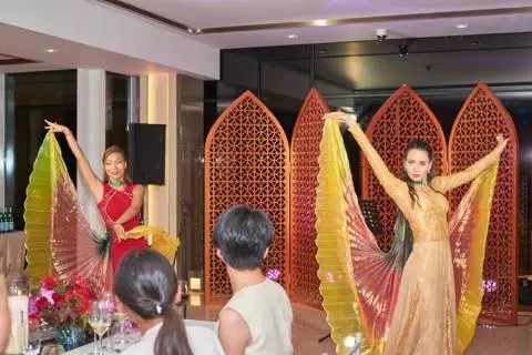 现场精彩别致的节目为晚宴营造出愉悦、舒缓、轻松的氛围,也再一次完美诠释了中大国际九号艺术·生活态度的内涵所在。开场转裙舞表演,以轻盈的旋转之姿绽放热情不羁的自由情怀,爵士乐队现场助兴,光影舞蹈演绎带领现场带入一场奇幻的梦境之旅,让您享受一段诗意般的舞蹈与光影对话,令人赏心悦目!